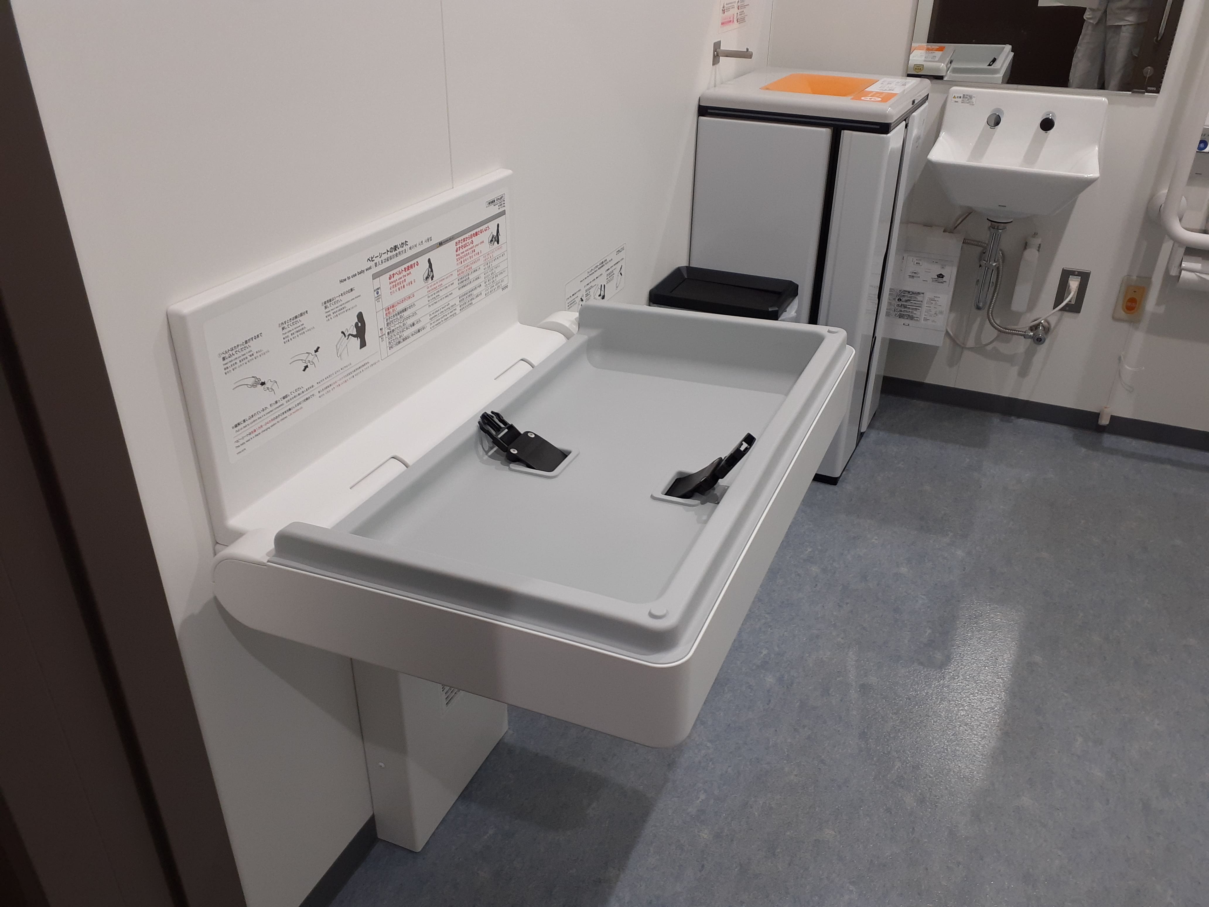 オストメイト対応、ベビーチェア・ベッドを兼ねます。